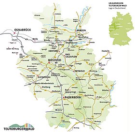 - Der Empfang von Mobilfunknetzen ist in Teilen des Teutoburger Waldes eingeschränkt bzw. nicht möglich, bitte dies bei der Nutzung von Nicht-Outdoor-GPS-Geräten beachten.
